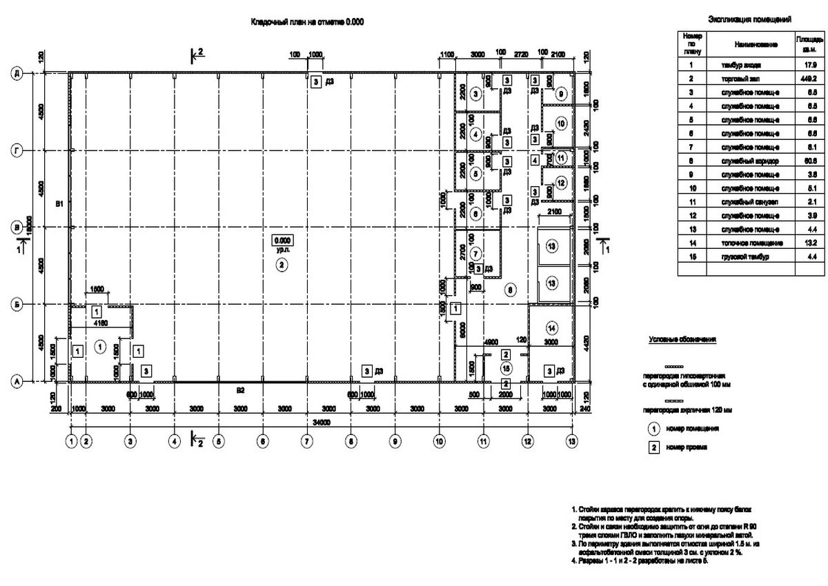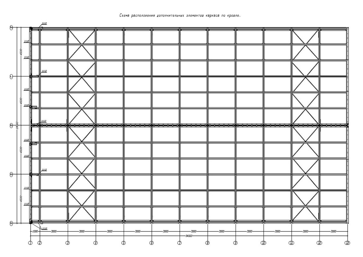 Жесткость каркаса здания в целом обеспечивается системой распорок, вертикальных и горизонтальных гибких связей.