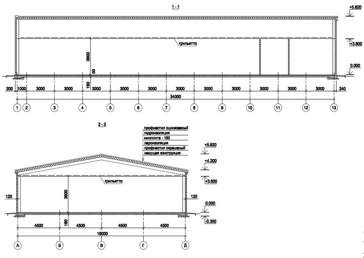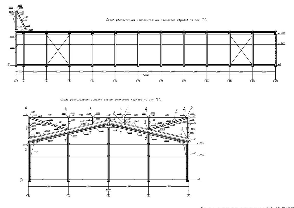 Стеновые и кровельные прогоны выполнены из холодногнутых С-профилей, изготовленных из оцинкованной стали. Соединение прогонов к каркасным элементам – болтовое.